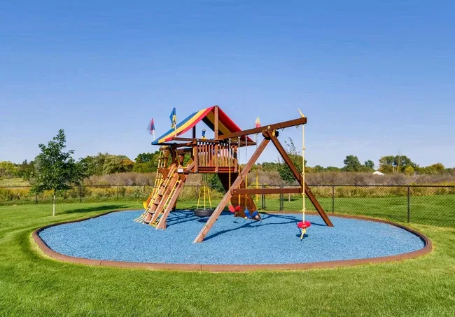 We put in a new playground for our kids about ten years ago. Our previous structure had pea rock underneath but we weren't in love with that option. So we went digging for a better solution. Our research led us to recycled rubber!