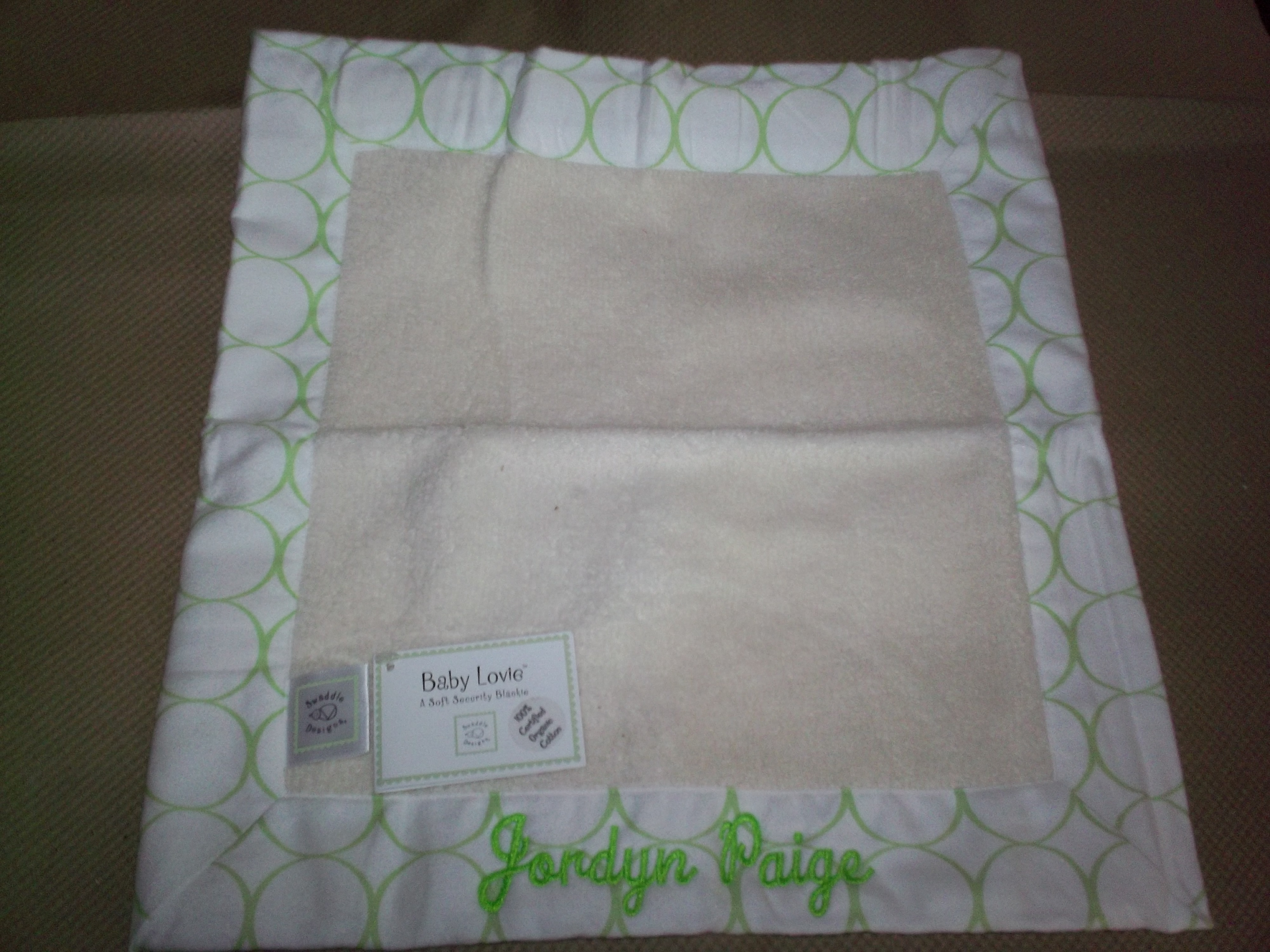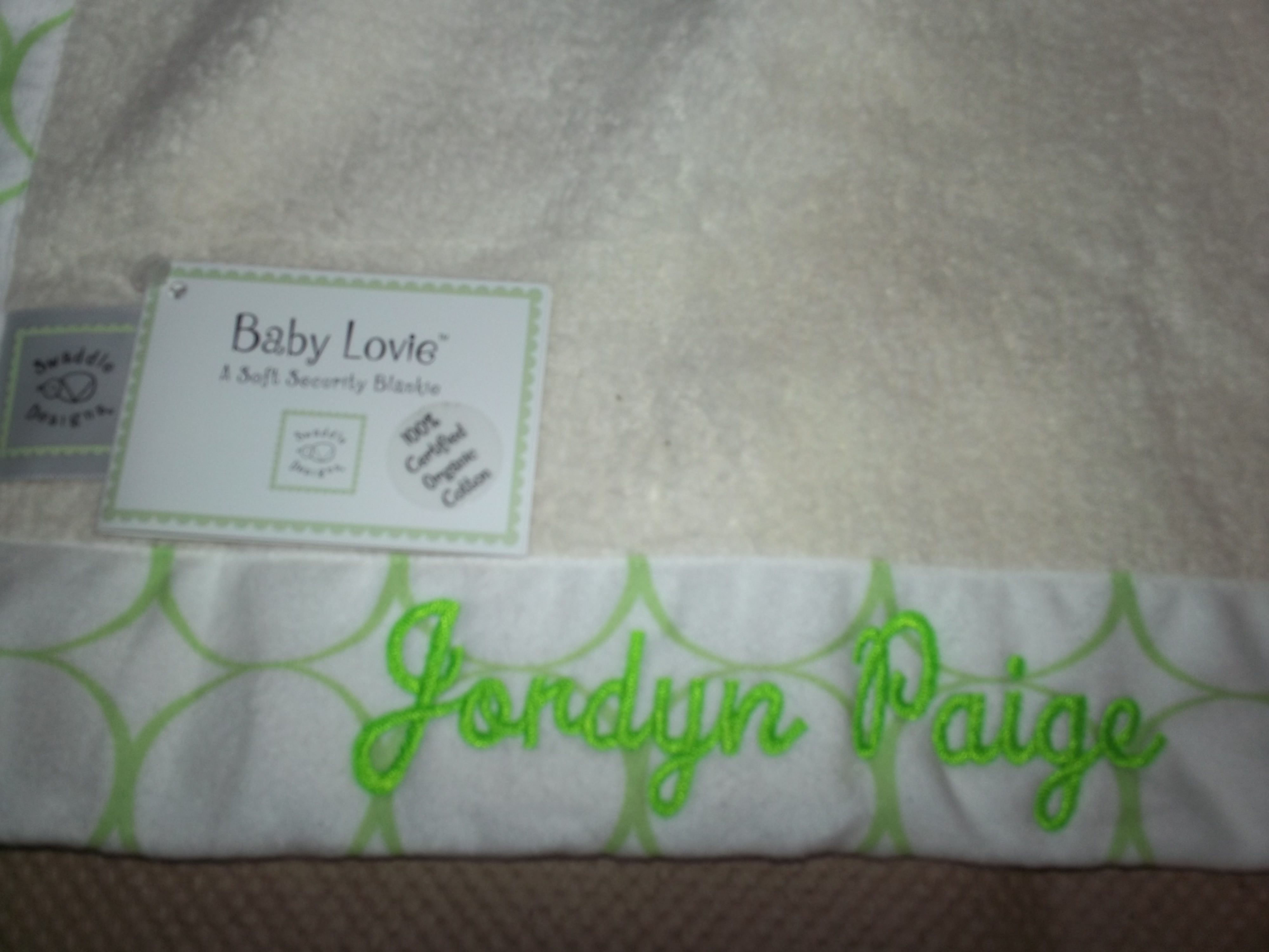 Blanket My Baby is a user-friendly shop. To find the blanket that best fits your needs, customers can search by blanket style, color, brand, or pricing. For our review, we were sent the 100% certified organic cotton Baby Lovie in Kiwi Mod Circles on Ivory. They even personalized the Lovie with my Niece’s name embroidered on the edging. I don’t think I’ve ever felt anything this soft and cuddly. Not only is it a perfect size and weight for baby to maneuver, but it appears to be very well made and extremely durable. I wish I had a full size “Lovie” to snuggle! My Niece hasn’t yet arrived so this will be waiting for her and I can only imagine she is going to enjoy it as much as we have enjoyed touching and feeling it while we wait for her.