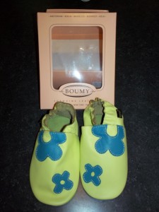 For my review I received the Flower Power Lime shoe from the Boumy Appliqué line. I absolutely love the bright lime color accented with bold blue flowers, which would definitely make a bold and fun addition to any outfit; they’re feminine and girly without being pink or frilly. I saw the design online before I received the shoe, but the colors are much more vibrant in person and the leather is undeniably soft and, I would imagine, very comfortable to wear.