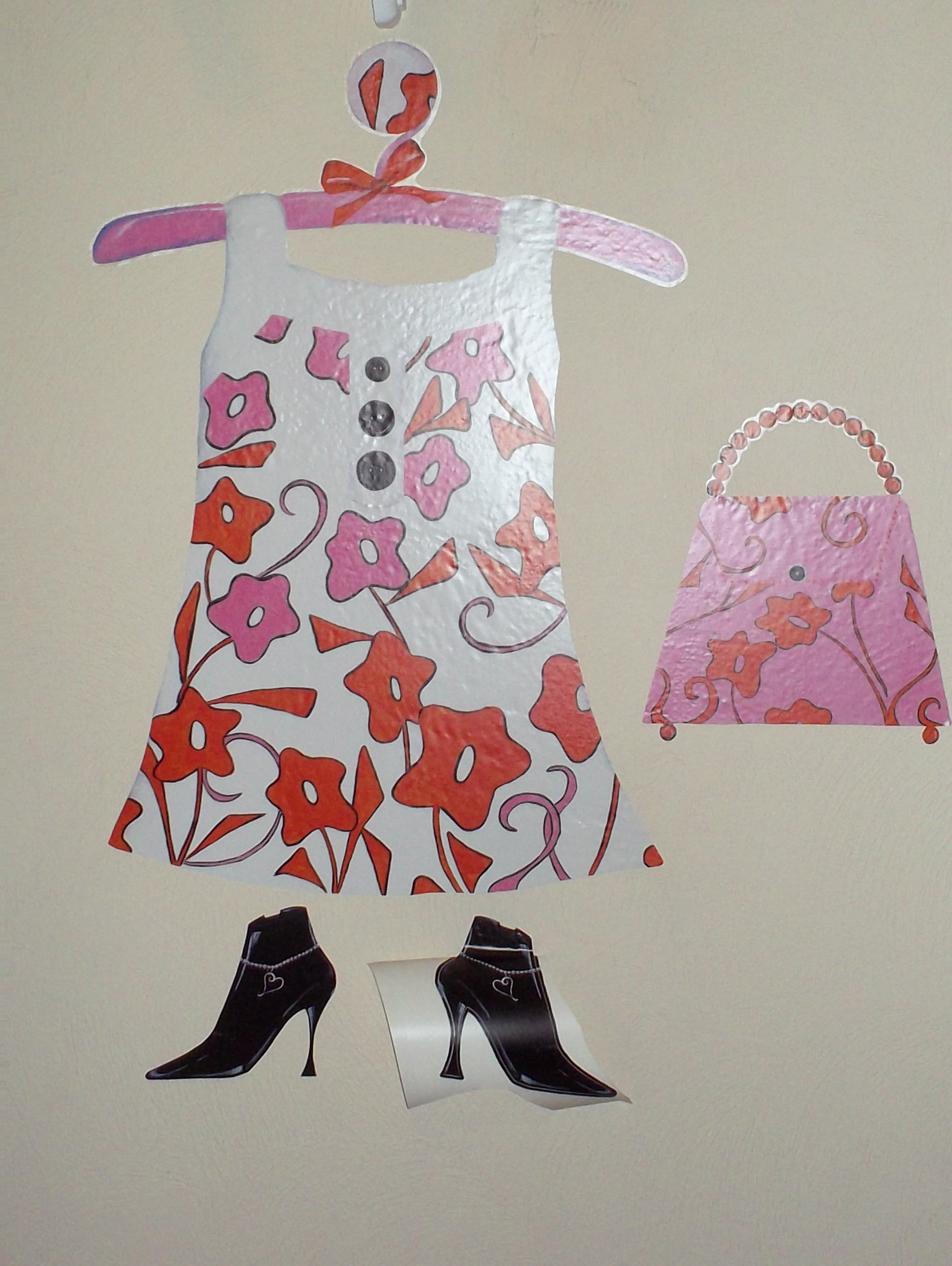 The Dress Up MegaPack has 57 vinyl wall stickers including glamorous dresses, stunning high heels, glitzy purses, and dazzling accent dots.