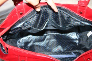 For my review, I received the Emilie M Leslie Tote in Red Patent. This bag has it all, function and fun! A top zipper closes the bag keeping all your items safely contained.