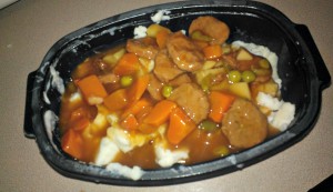 One day for lunch I wasn’t home so Ryan decided to heat up a package of the mashed potatoes to eat plain. They are really easy to prepare, you simply pull back the plastic film in one corner and then put the container in the microwave for 3 minutes. We found that with our microwave the outisde edges were hot but the bottom of the middle was still pretty cold. So we removed the film, stirred the potatoes and stuck them back in for a minute and that did the trick. Of course, your microwave may vary. Ryan enjoyed the garlic variety and was surprised at how many potatoes come out of one package – it’s definitely too much for one person.