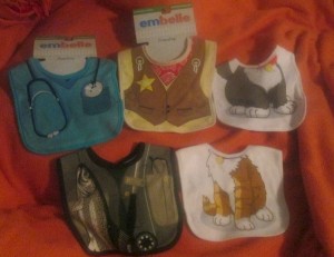 My sister has a 2 year old son and is due with a new baby in March, though we don’t yet know the baby’s gender. While her little guy isn’t very old and most of the stuff she had for him can be reused – especially if this new baby is a boy, it’s always nice to get some new things as well. I have a very large family and my sister got tons of items during her baby shower with my nephew. It makes it a bit hard to get her something that she doesn’t already have, so I’ve been on the lookout for unique baby shower gift ideas and Embelle Baby Bibs definitely fits that bill. The bibs are 100% cotton and come pre washed. Of course, this means that they can be thrown through the washer and dryer when they get dirty. What makes Embelle bibs unique is their design. Instead of being cute patterns or pictures of baby animals they work almost like costumes – turning your baby into a cowboy, doctor, cat, etc!