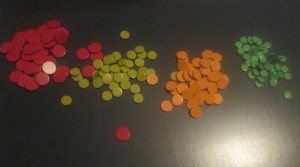 The Magna Color includes a set of plastic “pens” that you can fill with these small metallic dots. While they are metallic and will cling to the magnetic Magna Color, the dots themselves are not magnets. When you push the filled pen against a magnetic surface like the Magna Color, the dots come out one at a time. This allows you to create trails of “dots” to create words or images. Each pen has a slightly different sized internal compartment, and each color of dot is slightly different in size so that each pen can only fit one color of dots.
