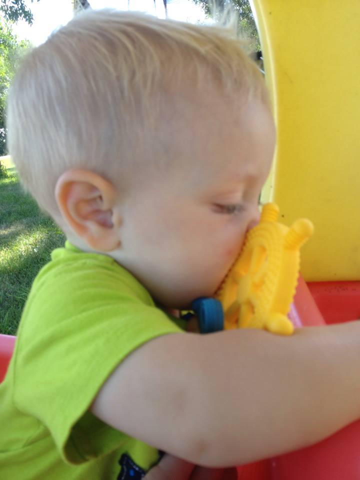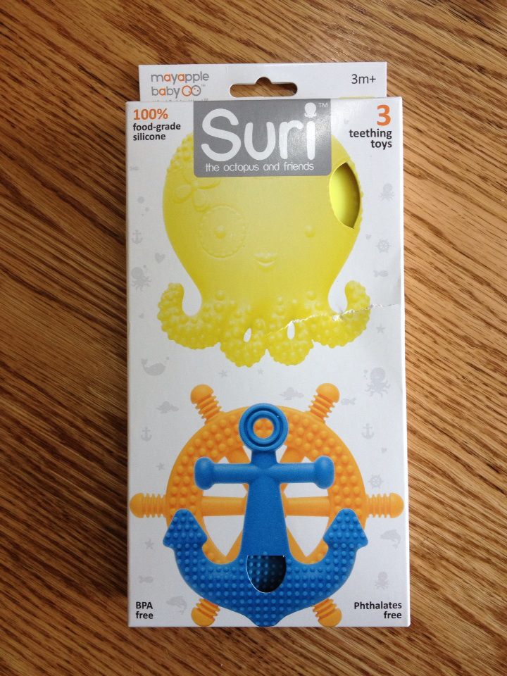 Teething is rough. Any parent that has gone through it knows how hard it can be. You feel helpless. Teething toys can bring a great sense of relief during these times. Most babies are putting anything and everything into their mouths to try to lessen the pain. I like to have safe teething toys on hand to aid the process. Our son has just turned one and is still struggling through rough bouts of teething. He currently has four teeth but more are trying to come in as he is chewing and drooling like crazy. I like the sturdy, yet flexible feel to our Suri Teething Toys. They feel like they will stand the test of time. The pieces are a great size and easy for young children to hold. If you are in the market for teething items, check out Mayapple Baby.