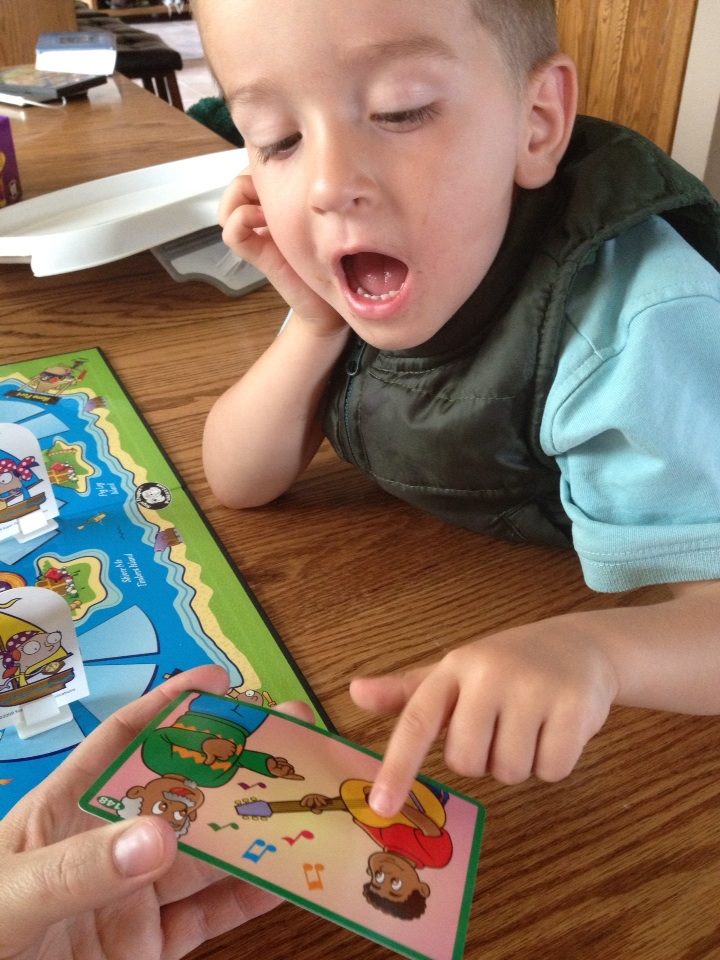 The Pirate Talk Board Game is a language game that is geared for children ages Kindergarden through 5th Grade. While I do include our 3 year old when we play, he is only able to comprehend about half of the game. Our 6 and 8 year old were able to fully participate and understand everything.