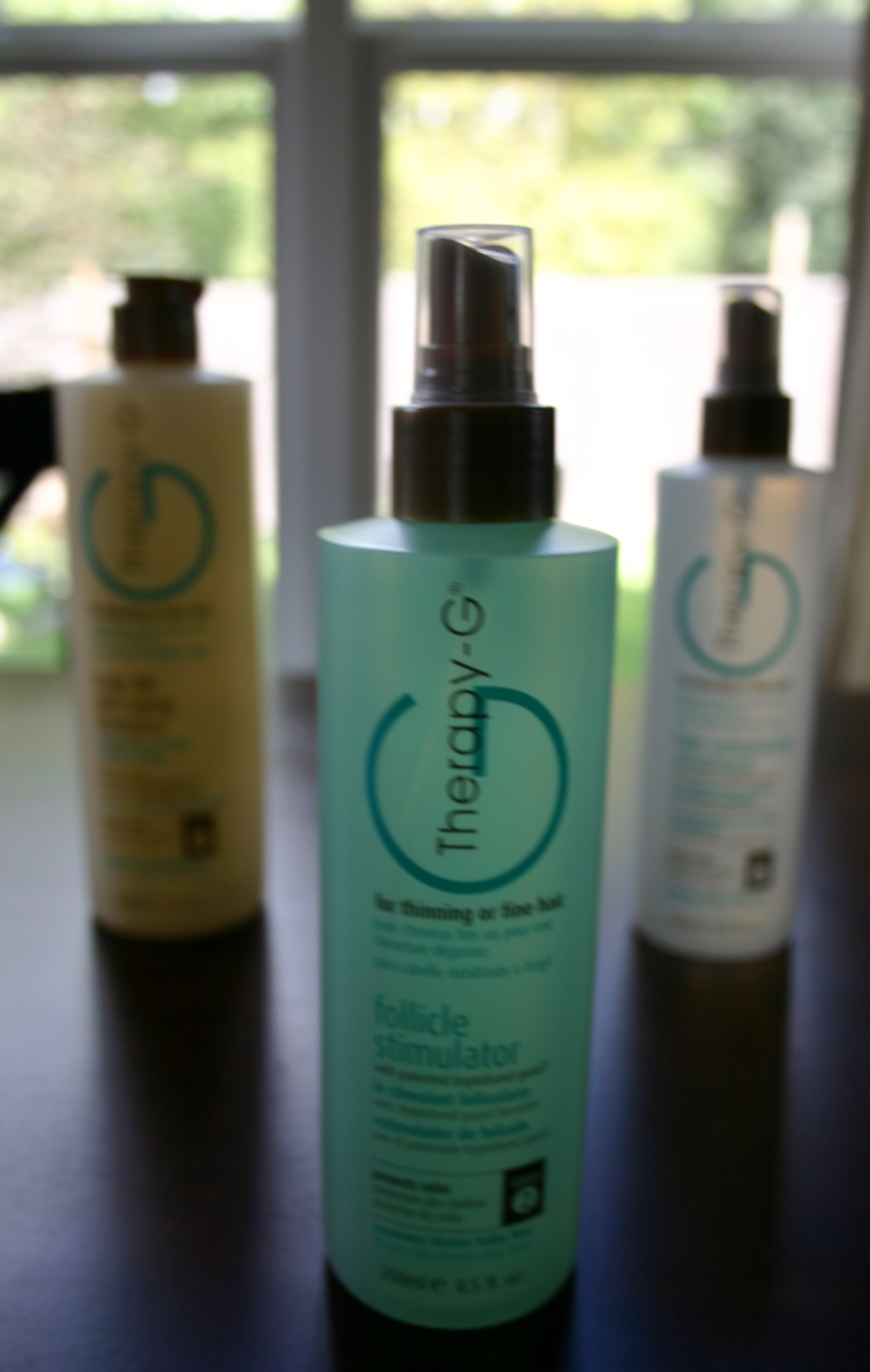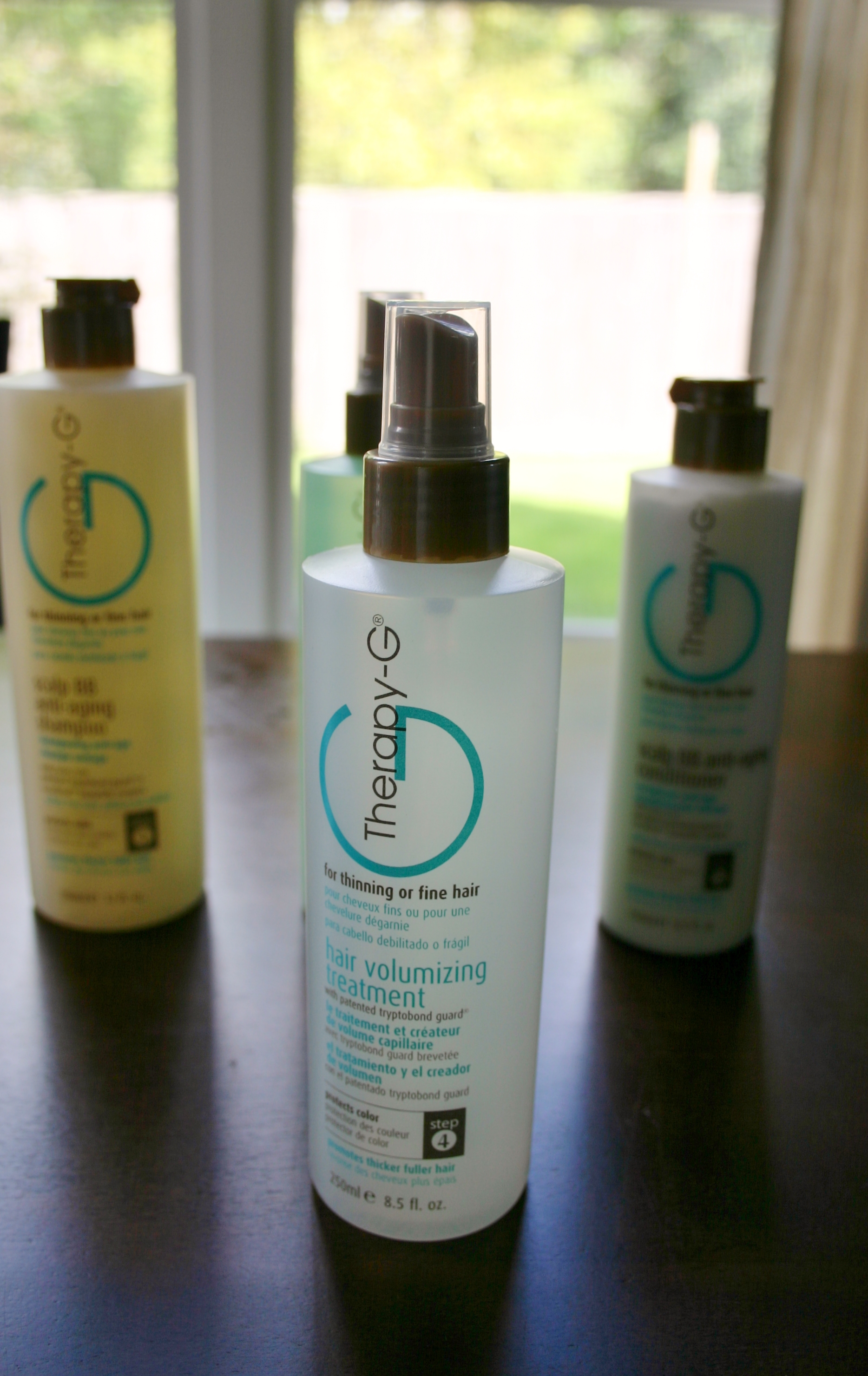 I have fine and thin blond hair. I remember my aunt doing my hair when I was young and telling me my hair was “frog fur”. I wasn’t sure what she meant, but knew that it didn’t sound good. As I got older, I too went to work in a hair salon. I learned that my hair has a really fine texture. This causes it to be limp and flat. I set out to find hair products that could help me improve the health of my hair and its appearance. I found Therapy-G.