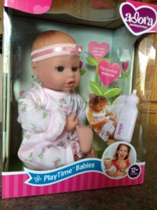 I was excited when I found the company, Adora, who supplies an array of dolls and accessories. They partnered with me for this review. The PlayTime Baby Line is geared for ages 1 and up and has several different styles available. We were sent the Little Princess version.