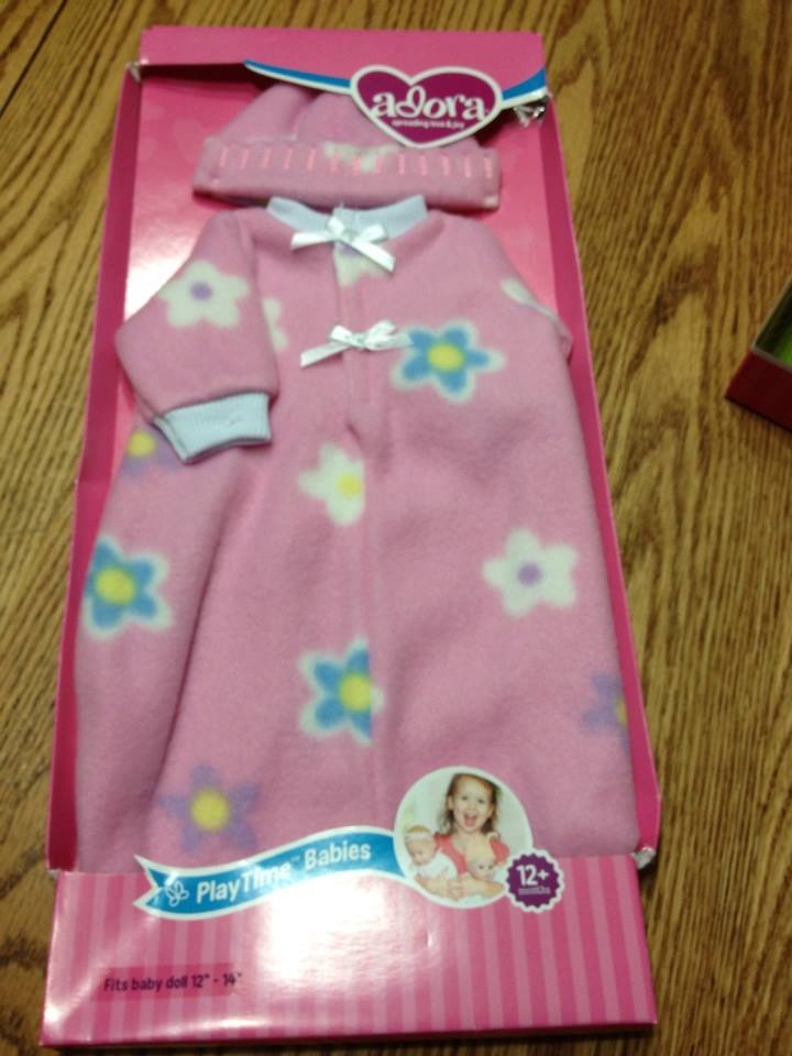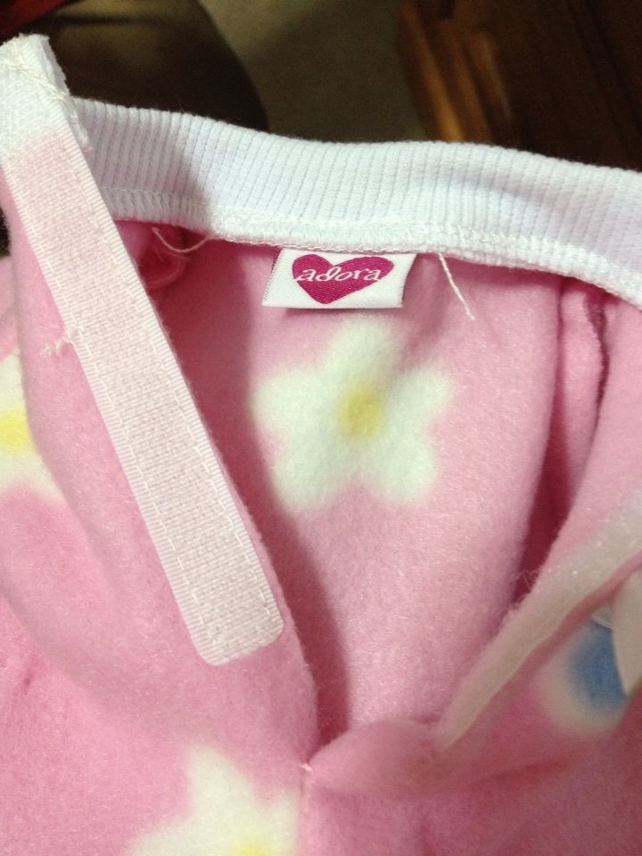 I also received the Two Piece Bunting Set in Pink to go with our PlayTime Baby. This set is soft to the touch and made with a cute flower patterned material. It feels fleece-like. I’m not always a fan of doll clothes because some can be really hard for young kids to actually use. I’m happy to report that the Bunting Set from Adora has a velcro closure right down the front which will make it easy to use. While the first time took some wiggling, the kids can now get the baby dressed into the bunting set easily.