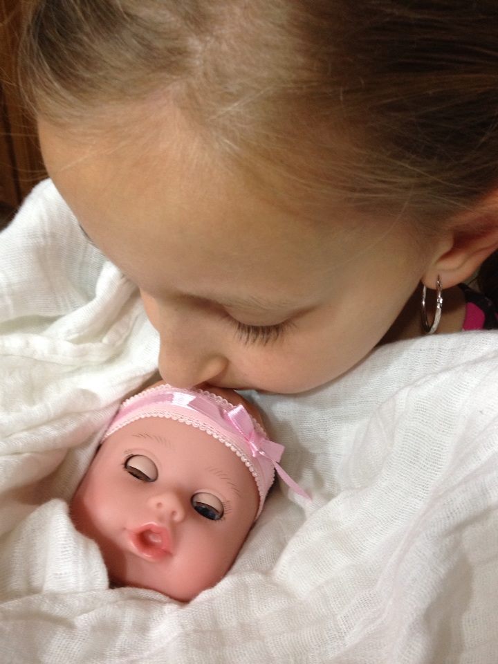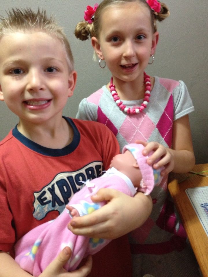 Very cute dolls! I L.O.V.E. how you included your son in the fun play! Boys need to be taught how to be good parents, too!! 🙂
