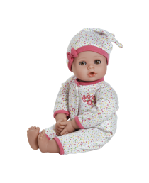 The first thing I noticed about the Little Princess PlayTime Baby is that she has eyes that open and close. When it comes to features in dolls, the eyes are always a big hit as it makes the baby more realistic. Upon pulling her out of the box, though, a soft baby powder scent fills the air that can’t help but make me think of a newborn baby. However, the biggest hit for me is that this doll is machine washable! After hours, weeks, and years of play, dolls can get dirty. With the Adora PlayTime Baby, just place the doll in a pillow case and wash in cold water. While I have not had to wash our baby yet, I’m thrilled to know that I have that option. She came dressed in a cute pink flowered romper with a matching headband to complete the look. Weighing in at only 12 ounces, the PlayTime Baby is light enough to be enjoyed by all four of our kids. This doll is really cute and will be enjoyed for years to come. Our 8 and 6 year old really like her although our son does wish it was a boy doll instead.