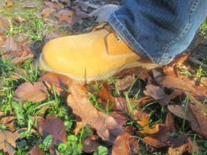 If you have wide feet, you might want to try these on in person before trying. The material is very stiff compared to tennis shoes. While Ryan’s feet aren’t wide enough to require him to buy shoes labeled as wide, they usually curve over the edge a little on tennis shoes. These boots don’t have enough “give” to allow his feet to spill over the sole so he’s very aware of the stiffness of the sides of the boots even though they fit. However, I think that if his feet were any wider at all they wouldn’t fit.