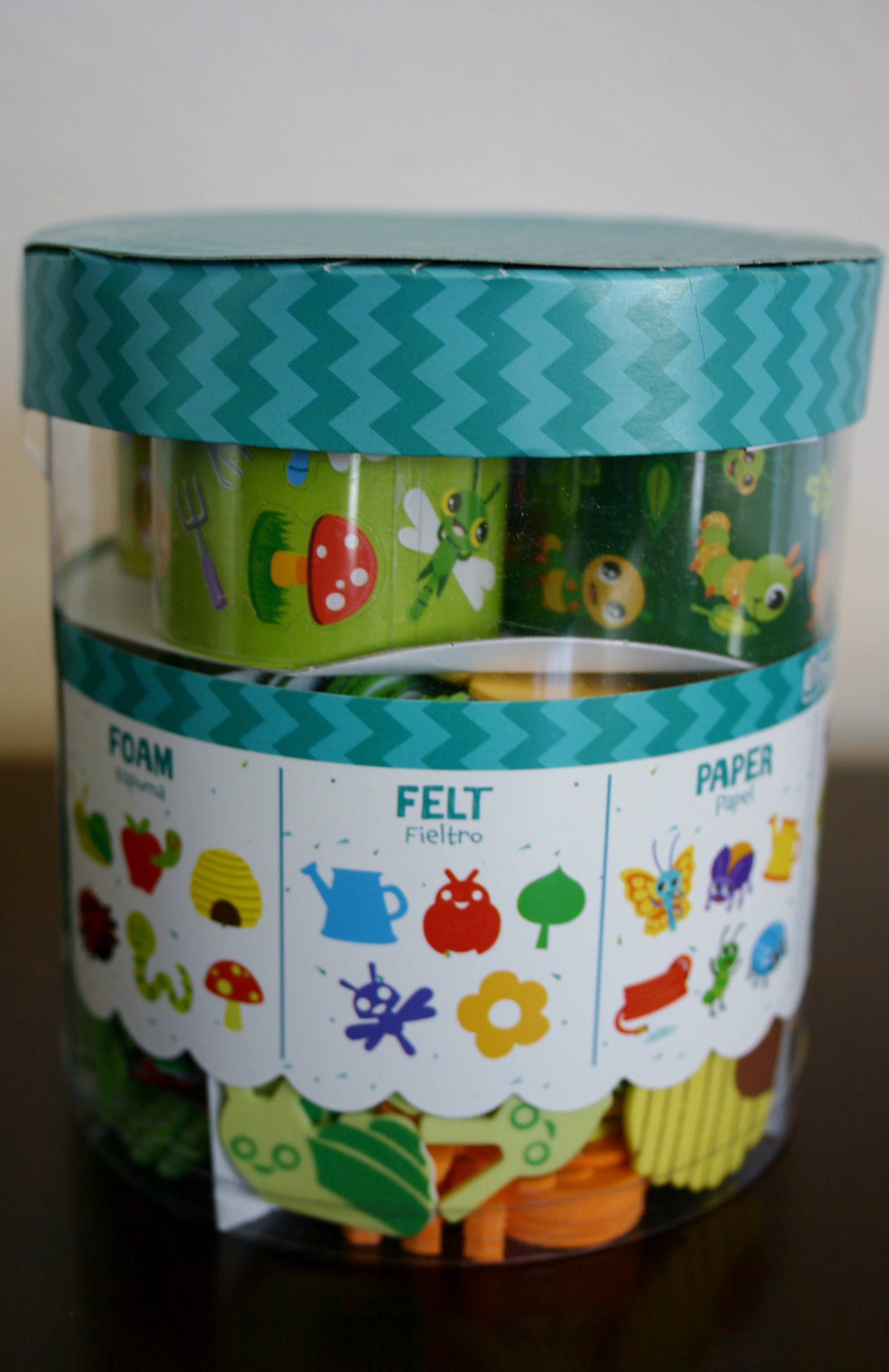For our review, we were blessed with a collection of PomTree products including: 3-D Playtown Creativity Kits, Large & Small Sticker Tubs, Playscape Creativity Kits and a Sticker Storybook.
