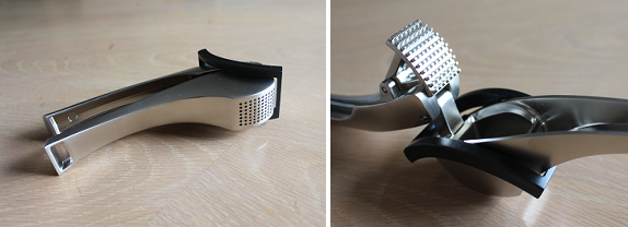 I love garlic but it can be a bit of a pain to cut so I was thrilled to receive Vacu Vin’s Garlic Press. It’s a lot faster to use a garlic press and it’s also better flavor-wise because while they are getting pressed through the raster, the garlic cells open up releasing their flavor. This garlic press is the only one I’ve ever seen with a lever (the black part) that scrapes the garlic off the raster. It’s also sturdy and well built so I know it’ll last.