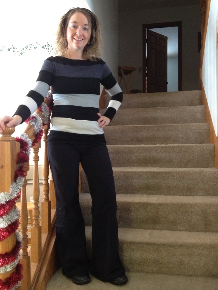 I received the Carina Sweater in the Black/Grey/White style. I don’t own many clothes with stripes but this knit top is gorgeous. The design is flattering and looks great on.