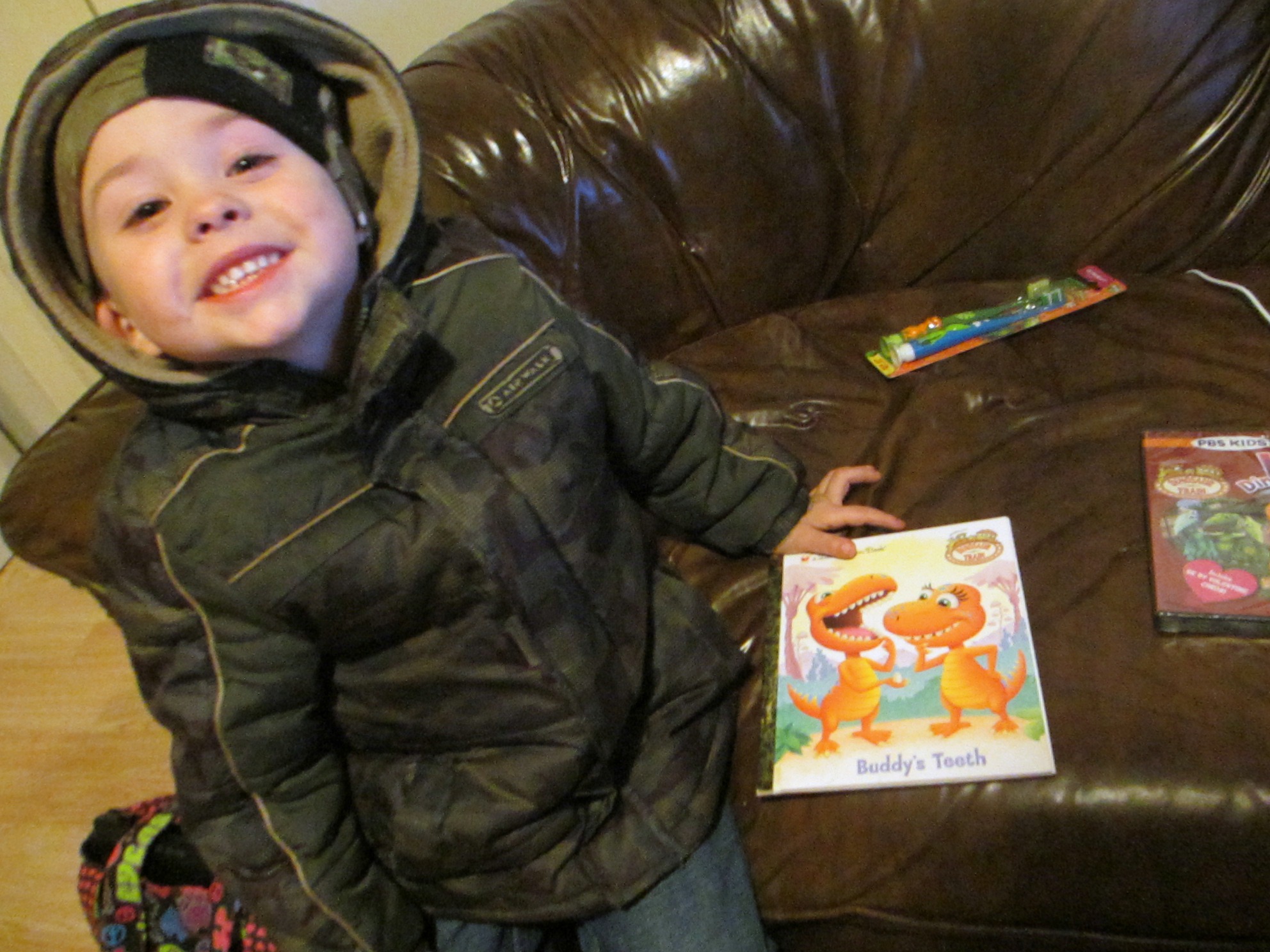 February is children’s dental health month so we were able to check out the book Buddy’s Teeth which is about buddy the dinosaur from Dinosaur Train beginning to lose his teeth. It discusses how he is a T-Rex and t-rex constantly lose and regrow their teeth because they are carnivores while other types of dinosaurs that don’t eat meat don’t lose their teeth and some dinosaurs don’t even have teeth. It’s a cute book and can be used to draw comparisons between how children lose their baby teeth. It’s recommended for ages 2-5. The pages are regular thin pages so it’s best for kids who are old enough to know how to be gentle with books.