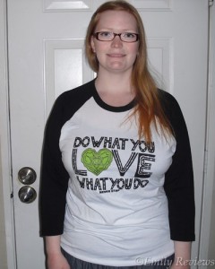 I really like the design on both of the shirts. I like the “Do What You Love, Love What You Do” quote, and the heart, with the heart chakra symbol for the “O”. I also really like the Sacred Geo design, with the sacred geometry, and “Love Conquers All”, “Manifest Change” on it. Both of these quotes are things I believe in, and the designs relate to my spiritual beliefs. Since I am not Christian, or any main stream religion, I often find it hard to find shirts, posters, etc. which speak to my beliefs, but both of these do. And I think they can speak to many people, regardless of their spiritual or religious beliefs.