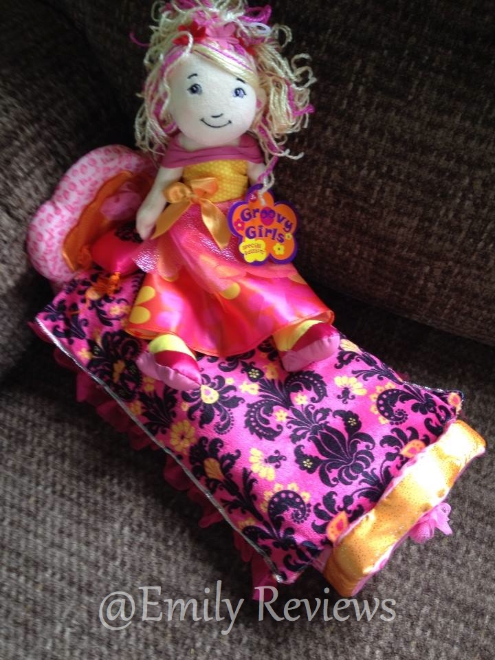 Our daughter recently turned nine years old and enjoys being a “girly girl” as well as getting down and dirty playing outside with her brothers or exploring around the farm. But when she laid eyes on the new Groovy Girls Princess Dahlia and Royally Ritzy Bed, the girly side took over and she jumped right into playing Princess.