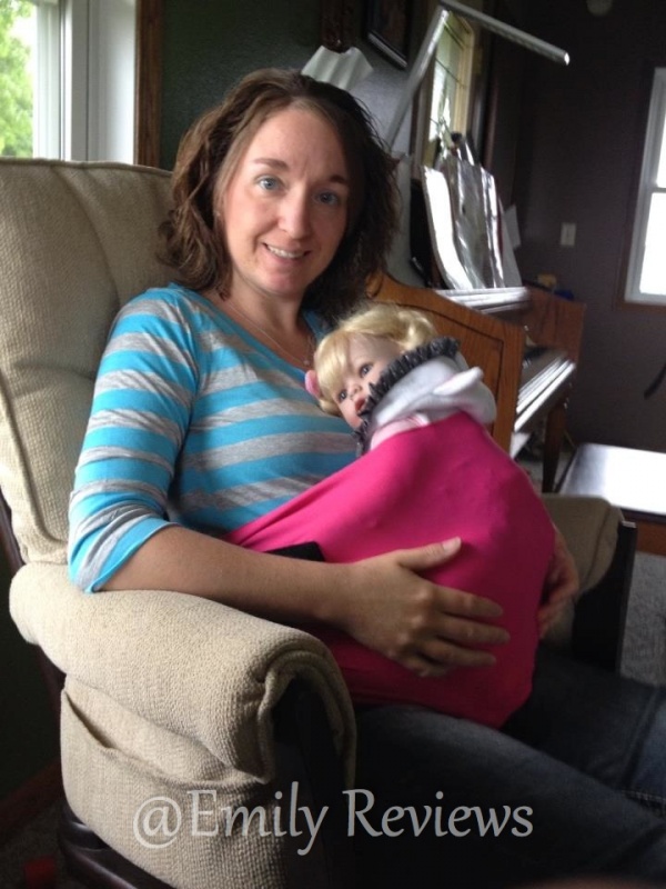 I used our daughter’s doll “Lucy” since our baby is not here yet. Even with my belly in the way, I was able to get the SleepBelt on and secured.
