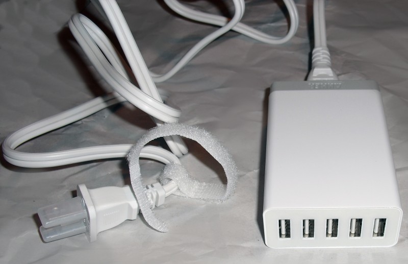 Both of these products are really convenient and easy to use. The 5-Port Desktop USB Charger simply uses one plug, and has an extended cord. This device lets you plug up to 5 USB cords into it for charging, so we can charge our phones, tablet and other devices without having to have an individual USB adapter for each. This has saved a lot of room on our power strip, and reduced a lot of cord clutter. Instead of having four different adapters plugged into our power strip, we now simply have this one charger plugged in that allows us to charge all our devices, and all at once!