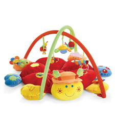 The Light and Sound Lotty Playmat from Mamas & Papas is no ordinary playmat! First off, it’s colorful and has over a dozen features to stimulate baby including sounds and music, lights, a miror, and more. It’s a fun way for baby to explore and discover through touch, sound, and sight. It’s super plush which I like because some other playmats I’ve seen are barely padded. This one looks . This one is wide enough that it provides enough cushioning for baby when she learns to sit up. It provides lots of opportunities for play and interaction, even basic problem solving and cause and effect. Lotty has a cheerful voice and her little critter companions do too! The critter theme will appeal to both baby boys and baby girls. Here is my full Mamas & Papas Playmat Review.