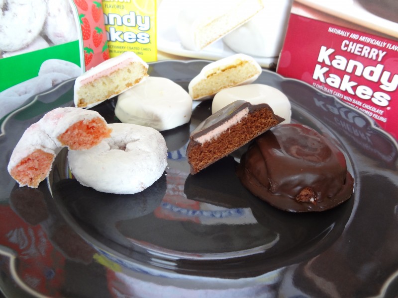 Normally I’m not one to indulge and eat more than the suggested serving size of a treat, just kidding that’s exactly what I do, often. My excuse is a high metabolism and breastfeeding, I NEED the extra calories, or so I tell myself. These donuts and Kandy Kakes didn’t help me make any exceptions to those excuses. The first one I tried was the Lemon Kandy Kake, so a small description would consist of, a little circle of cake topped with a lemon flavored creamy icing and then coated with a chewier confectionery coating. I loved it, I have been having some cravings for lemon curd bars and lemon flavored anything really, and these definitely met that craving! Next in line was the Strawberry Kandy Kake, almost the same thing but with strawberry filling instead, again equally delicious. The one Kandy Kake that really stood out to me was the Cherry Kandy Kake, this one was a way to meet that chocolate quota for the day, what you don’t have a daily chocolate quota? Its okay, its safe here, no judgement! Anyways, as I was saying, the cherry stood out to me because, it was a chocolate flavored cake topped with flavorful cherry filling and then coated in..yup, chocolate! The flavors of this one really reminded me of the chocolate covered cherry treats that you see around the holidays, you know the ones with all the creamy goop and cherry in em? This tasted a lot like that but with no goop! As someone who’s not a fan of weird textures I am glad to have this alternative, just creamy moist chewy awesomeness!