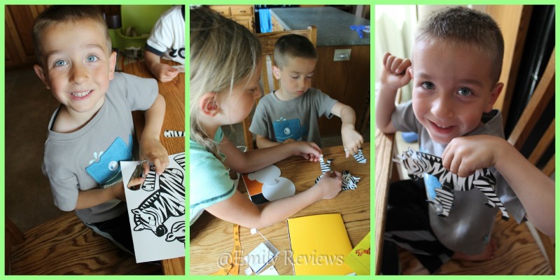 Creative Hands sent us three of their craft kits including: Zoo 2 Do, Creative Fun Tote, and Paper Pals Bugs & Flowers. These kits come with a variety of project ideas inside and everything is included except glue! (There are even some “sticky squares” for some of the adhesive needs though.) The kids decided on the Zoo 2 Do for this review. It’s been fairly nice out lately and these kits really make for fun crafting indoors or out. Since the baby was sleeping, we chose to be inside. The kids spent the better part of an hour creating all sorts of fun animals, pencil toppers, and puppets with this kit.