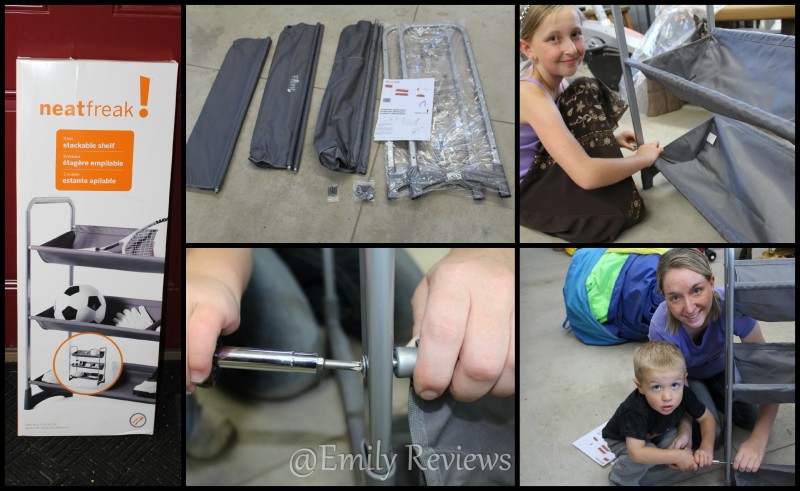 But today, with Winter coming, we were getting down and dirty as we started cleaning and organizing the garage in preparation. So Neatfreak sent us their 3 Tier Stackable Utility Shelf to help. This particular unit is made from wipe-clean material to make the fabric bins easy to clean. The middle shelf has a divider that makes storing smaller items more convenient too. The lightweight design makes ensures easy moving as well. Measuring in at 32.6″ x 13″ x 35.1″, this shelf holds a great deal of items while not taking up too much precious floor space. It’s even designed to be stackable when using two units.