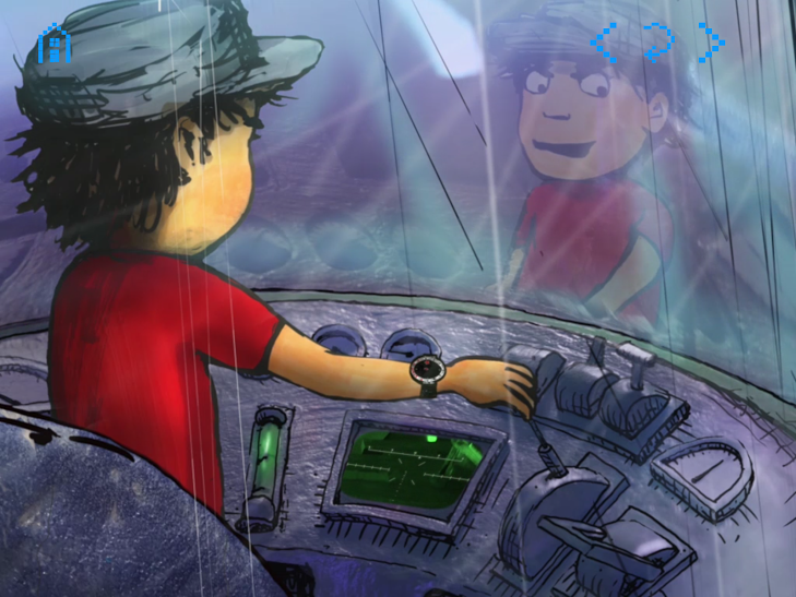 The ebook is beautifully narrated, and pauses every several seconds and asks you to page forward, so you can go at your own pace and take breaks as needed. Some pages are animated while others are not. A few times over the course of the ebook you are invited to interact with the book. For example, one scene shows the night sky and has some stars that appear brighter than others. You are invited to point out the brighter stars in a certain order to connect them to create a constellation. In other part, you find a robot parts factory and have to select robot pieces and put them onto the robots body to create a full robot.