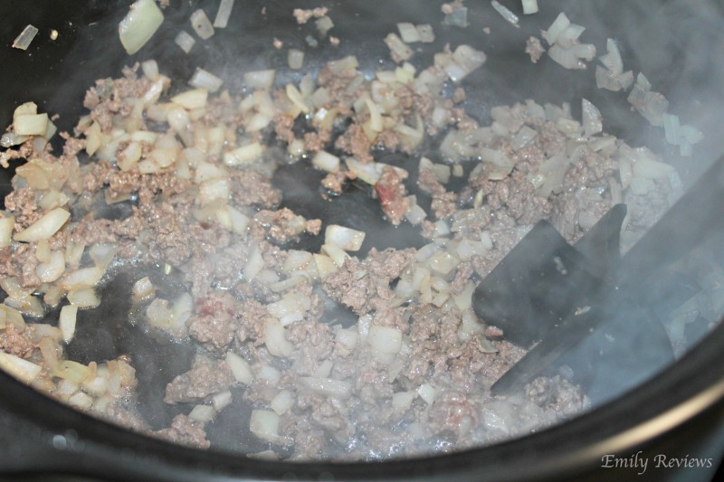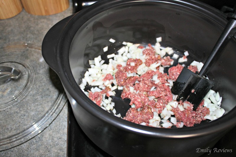 ~Season and brown hamburger and onion together in your Pampered Chef Rockcrok Dutch Oven XL.