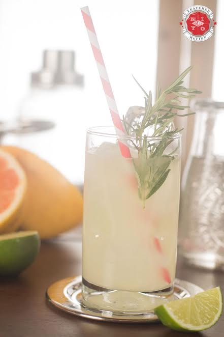 - Combine Pompelmocello, white rum, lime juice, simple syrup and rosemary in a shaker with ice.