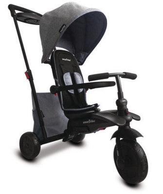 The 7 in 1 smarTrike Folding Trike provides a smooth and easy ride and effortless maneuverability. The enhanced steering system allows the trike to grow with the child. When the baby is 9 months old, the trike will be in “parent mode”: the parent controls the steering much like a stroller. As the little one grows and develops, then they can learn how to steer and pedal. As they grow more comfortable, it is easy to switch from “parent mode” to “child mode” where the child can control the steering and pedals on their own.