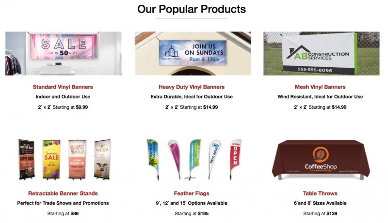 Half Price Banners offers a variety of products including: