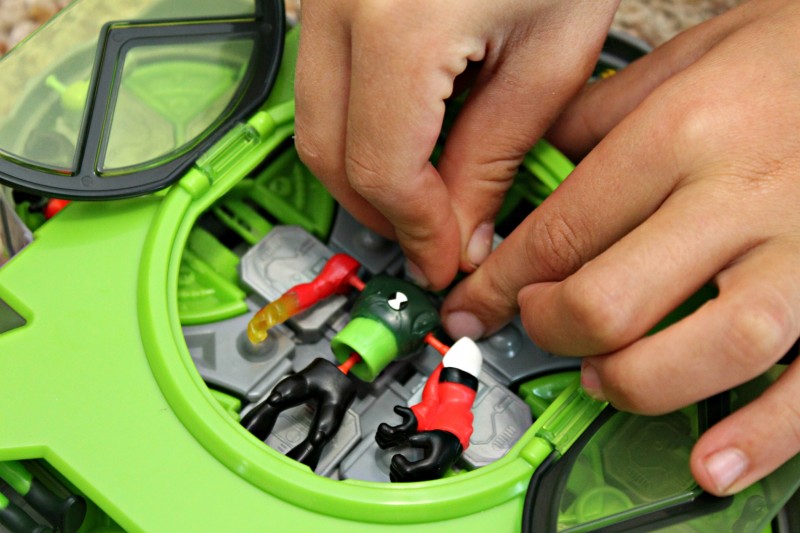 Mix and match by selecting and combining the desired parts inside the Omnitrix-inspired chamber. Once your alien creation is complete, launch them out!