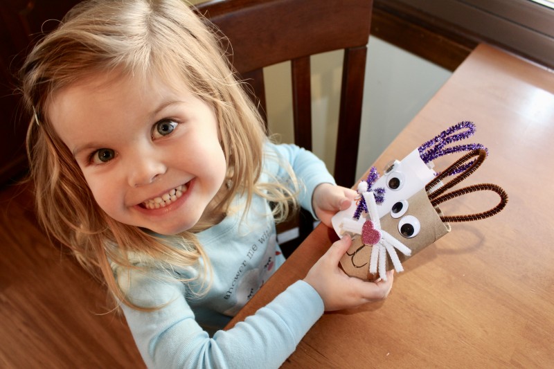 My three-year-old daughter was at my parent’s house last weekend and she wanted to do a craft project. With only a few supplies, she was able to come up with a pretty cute Easter Bunny craft that my daughter adored. It was so quick and easy that when my daughter came home from my parents’ house, she and I made another bunny so that the first bunny had a friend.