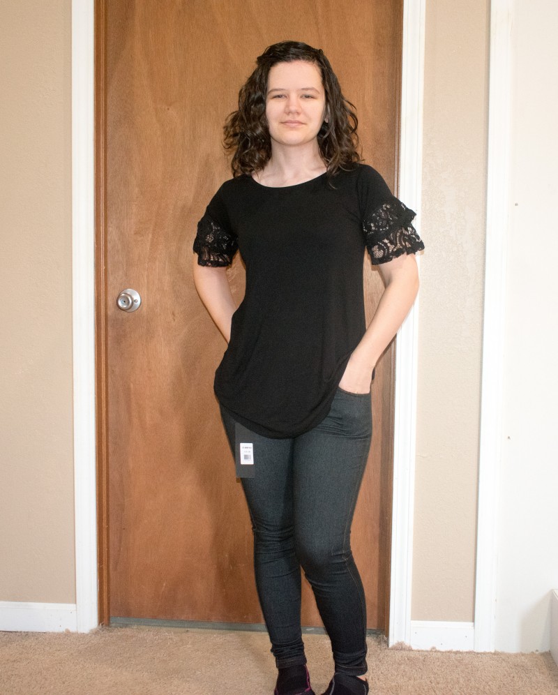 Overall this was a really great shipment for me. The two jeggings/skinny jeans have become go-to clothing items for me. I also really like the black top and purple top.