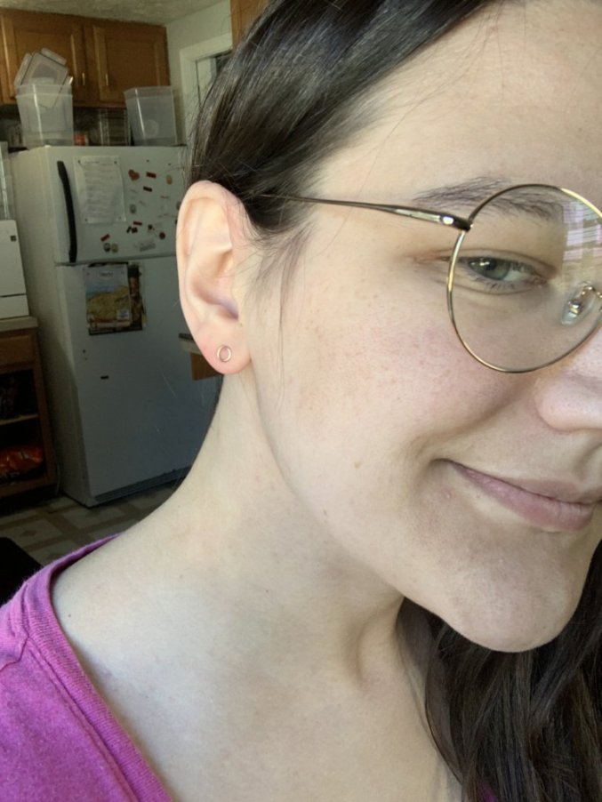 They are available in yellow gold, rose gold, white gold, or sterling silver. They’re also available in multiple sizes – 7mm, 10mm or 17mm. I went with yellow gold in 7mm. I like jewelry that is on the dainty side.