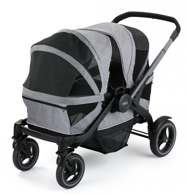 Every little one needs a great ride and the Graco Modes Adventure Stroller Wagon is a good choice. It’s loaded with some handy features such as large individual canopies, child snack and cup tray, footwell, adjustable handle, and even a flip flop friendly brake. The teton gray color is gender neutral and looks great. You can use it in push or pull mode by simply moving the handle from one end to the other. It folds into a compact size that is no larger than the typical double stroller and features a lightweight aluminum frame for easy maneuverability. This sturdy toddler wagon holds up to 50 pounds per seat, or 100 pounds total. Use it as a beach wagon or take it to the park; no matter where you go, this all-terrain wagon makes it easy.