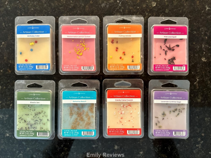To go with your warmer, Candle Warmers has a wide variety of wax melts. They have Classic Wax Melts, Aromatherapy Wax Melts, Artisan Wax Melts, Odor Eliminating Wax Melts, and Triple Fragrance Wax Melts. I tend to gravitate towards Classic, Artisan, and Triple Fragrance Wax Melts.