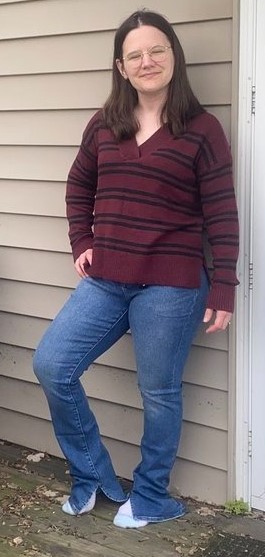 The sweater and jeans shown here were both sent in this shipment. This sweater is one I would have loved when I was about 15-17! I’m not one to wear stripes much anymore so I decided to pass on keeping it. It is priced at $32.99.
