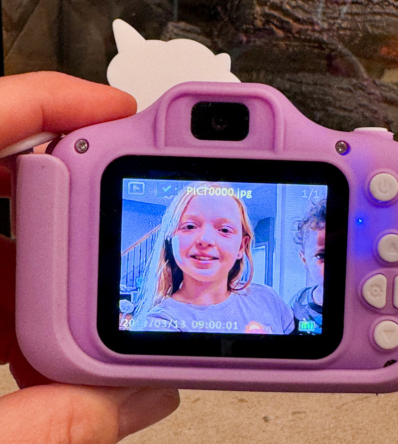 - Selfie Mode: You can even switch the camera around to take selfies, which the kids LOVE to do!