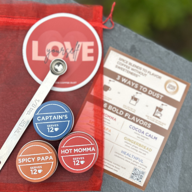 Give the coffee lover in your life the gift of a flavorful, mindful morning this Christmas with the Vashon Island Coffee Dust’s Love Brews Magic Coffee Lover Gift Set. Each sip becomes a moment of tranquility as they enjoy coffee enhanced with all-natural, recognizable ingredients. This charming set includes three delicious Coffee Dust flavors—choose from Hot Momma, Spicy Papa, and Captain’s, or Cocoa Calm, Gingerbread, and Healthful—allowing them to tailor their cup to their mood. A perfectly sized spoon ensures precise sprinkling, while a sweet “Love yourself” sticker adds a thoughtful touch. Everything comes tucked into a gift-ready red pouch, eliminating the need for wrapping while making it instantly presentable. Whether for friends, family, or coworkers, this set transforms an everyday ritual into a moment of joy, indulgence, and self-care. It’s a practical, delicious, and ready-to-give gift that coffee lovers will adore this holiday season.