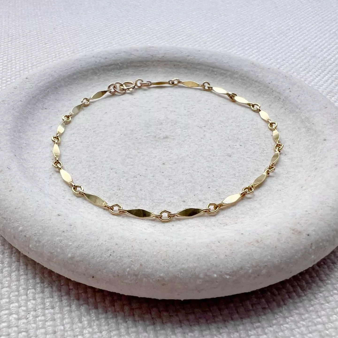 Lola Bean is a company that makes handcrafted jewelry out of New York! This Dapped Chain Bracelet is solid gold with smooth, shiny bars linked together into a beautiful gold chain bracelet that goes with anything. Which is what Lola Bean focuses on – pieces that feel effortless and are on the dainty side, making them great for every day. This bracelet is available in four different lengths, and you can choose between gold and sterling silver filled. It’s priced at $78 which is a solid price for a gold filled bracelet that she can get tons of wear out of!